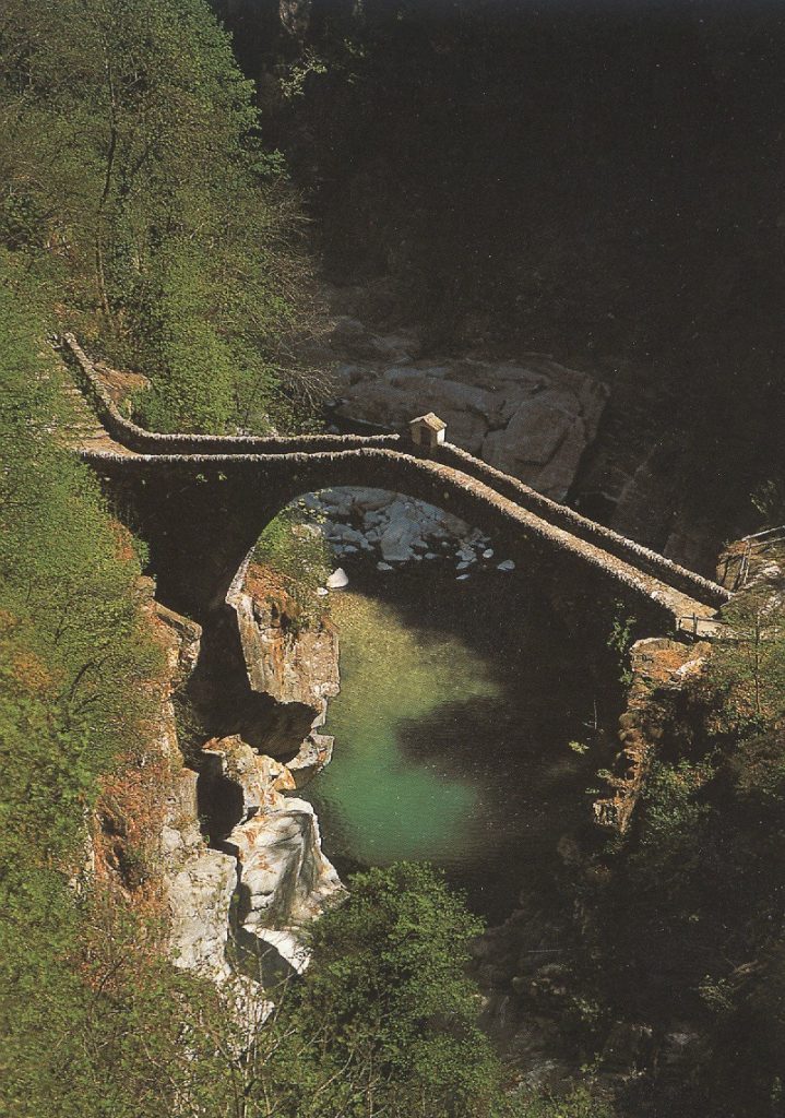 Der Saumpfad zu den Häusern meiner Grosseltern und Eltern im Weiler Remagliasco zweigt etwas westlich von Intragna von der Talstrasse ab und führt über den eindrücklichen 1578 gebauten und 1989 restaurierten Ponte Romano.
