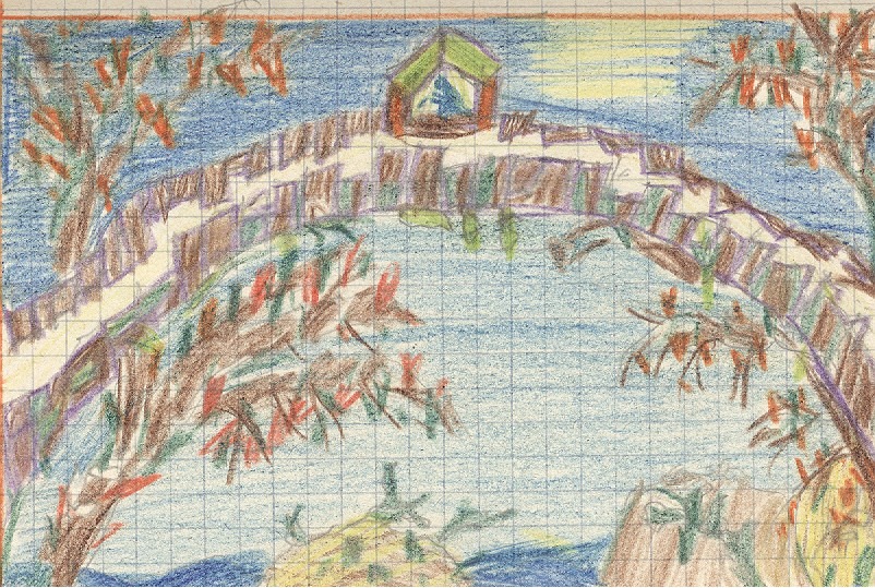 Als Viertklässler zeichnete ich den Ponte Romano 1954 so in mein Aufsatzheft: