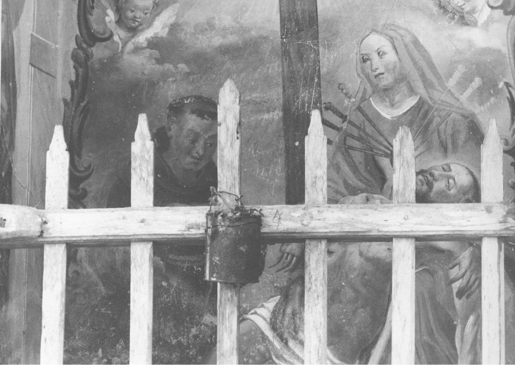 Bevor sich der Saumpfad zur Brücke hinunter windet, führt er an einer Wegkapelle mit der Darstellung der Madonna di Re vorbei. Der Bildstock auf der Brücke ist dem Heiligen Nepomuk geweiht. Nach einem steilen Aufstieg steht linkerhand eine Wegkapelle, die mich mit ihrer drastischen Darstellung der Mater dolorosa tief beeindruckte.