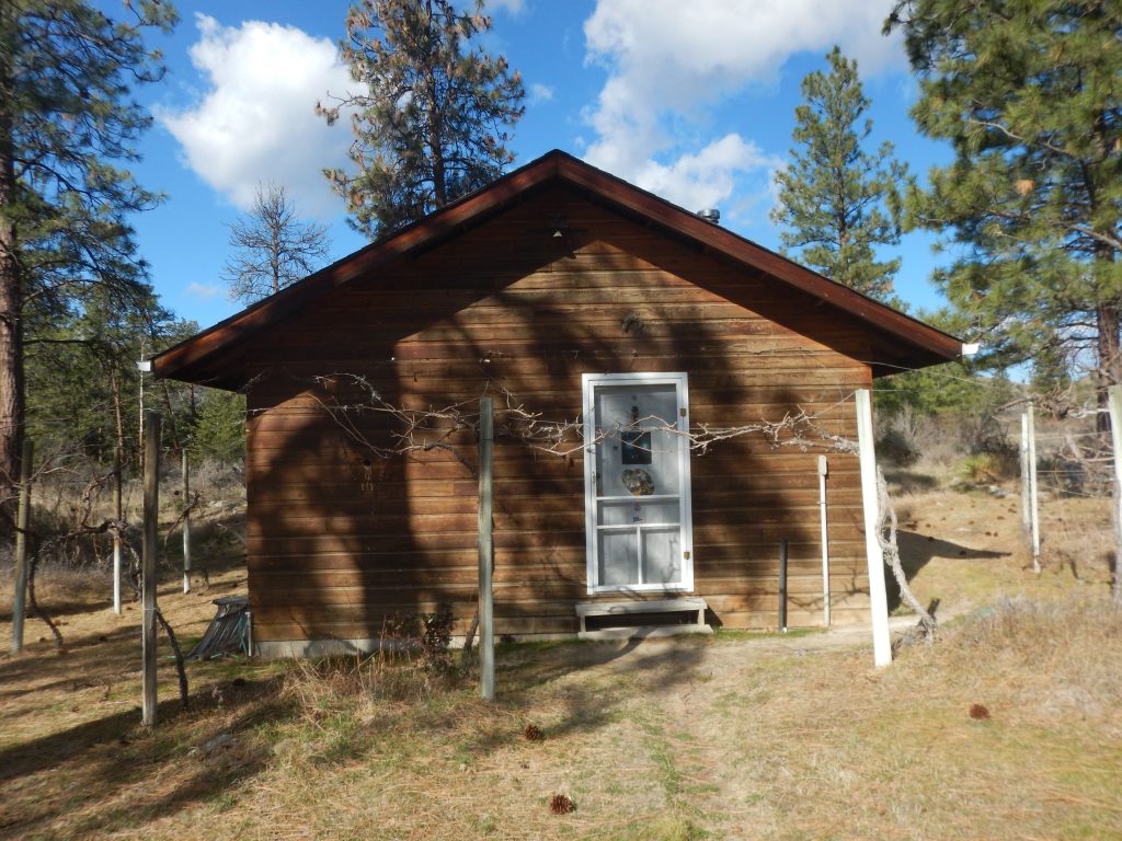 Die Reben hinter den Gartenbeeten klettern jedes Jahr in die Saskatoon-Büsche hinauf.