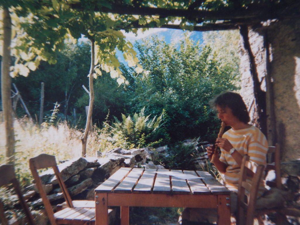 Hier spielt Marianne im Sommer 1991 Blockflöte.